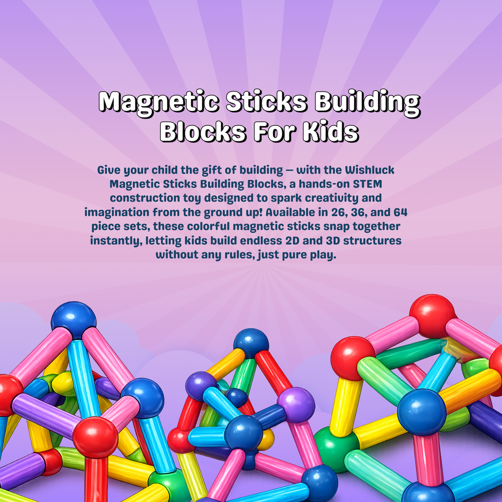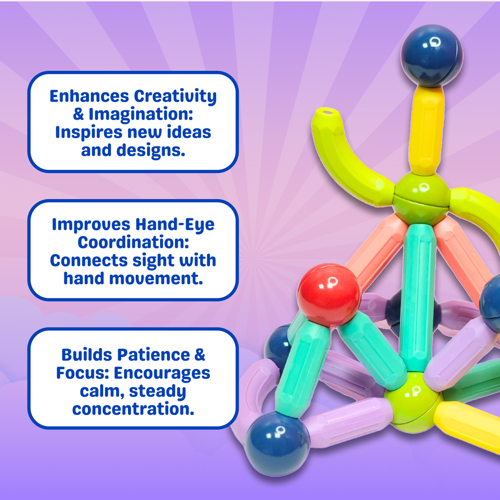 A fun and educational toy that lets kids build, create, and explore endless shapes using colorful magnetic sticks and balls.