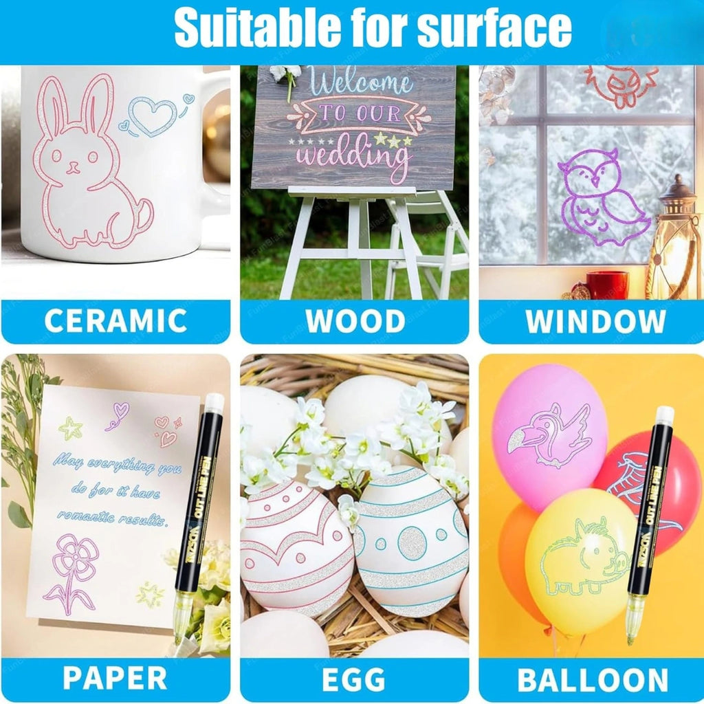 Add shimmer and color to your artwork with vibrant dual-color outline pens. Perfect for journaling, crafts, cards, and creative projects—smooth, bold, and effortlessly fun to use anytime, anywhere.